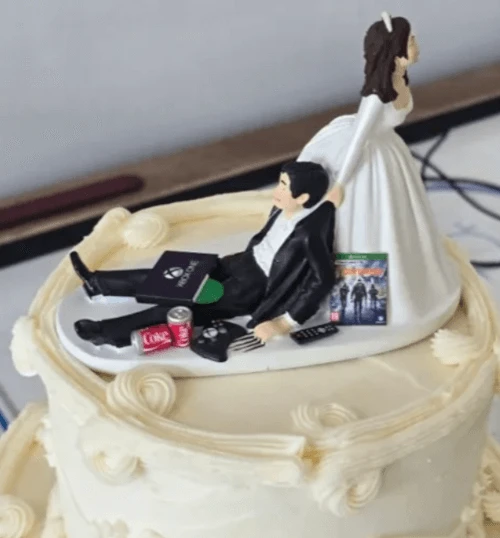 Стремление сделать свадьбу уникальной иногда заводит молодоженов слишком далеко. Ярким примером стал скандальный торт, который одна пара представила гостям на своем торжестве. Отказавшись от традиционных фигурок, они заказали целую скульптурную композицию: невеста в ярости тащит жениха за шиворот, а тот отчаянно тянется к разбросанным видеоиграм.